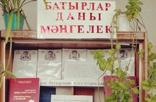 Мәктәп китапханәсендә "Батырлар даны мәңгелек" дип исемләнгән китап күргәзмәлеге эшли.