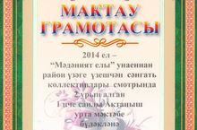 8 май көнне район мәдәният үзәгендә 2014 ел - "Мәдәният елы" уңаеннан район үзәге үзешчән сәнгать коллективлары смотрының йомгаклау концерты булып узды. Бу бәйгедә безнең мәктәп коллективы II яулады. Барлык катнашучыларга зур рәхмәтебезне җиткерәбез һәм киләчәктә дә уңышлар телибез!