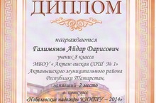 Ученик 8 класса Галимянов Айдар (руководитель - Мухамадиев Д.С) занял 2 место в номинации "Древесина" конкурса "Нобелевские надежды КНИТУ - 2014"и награжден дипломом. Остальные участники этого мероприятия: Хабибуллина Резеда, Янгирова Альмира(руководитель - Сафиуллин Р.Н.), Лотфуллин Нурсил, Багаутдинов Алмаз (руководитель - Мухамадиев Д.С.), Гилаева Айгуль (руководитель - Валиева Э.Ф.) награждены сертификами. Молодцы, ребята!