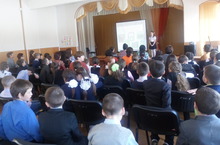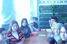 С учащимися 7Б класса библиотекарь школы Хисамова Н.М. провела урок под названием "Героизм людей в космосе".