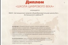 Наша школа награждена дипломом за участие в Общероссийском проекте "Школа цифрового века", разработанным в соответствии с Федеральной целевой программой развития системы образования на 2011-2015 годы (индикатов №9) и направленным на комплексное обеспечение образовательных учреждений цифровыми предметно-методическими материалами и дистанционными образовательными ресурсами для повышения профессионального уровня педагогических работников, за использование педагогическим коллективом образовательного учреждения возможностей севременных информационных технологий и цифровых предметно-методических материалов, предоставленных в рамках проекта. Также, приняв участие в этом проекте, стали обладателями грамот учитель информатики Ялалова Гульнара Дильшатовна, учитель английского языка Гимранова Сания Мударисовна, учитель математики и информатики Галиева Рузиля Ферролевна.
