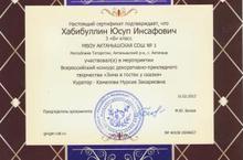 Поздравляем ученика 3б класса Хабибуллина Юсуфа с успешным участием в Всероссийском конкурсе декоративно-прикладного творчества "Зима в гостях у сказки" (куратор - учитель начальных классов Камалова Нурсия Закариевна). Молодец, Юсуф!