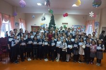 Сегодня в Азякульской начальной школе прошла "Елка". Зал с детскими коллективными танцами, песнями, стихами, играми наполнился праздничным настроением.
