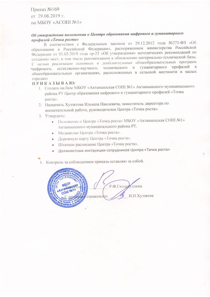 Положение о Центре образования цифрового и гуманитарного профилей "Точка роста"