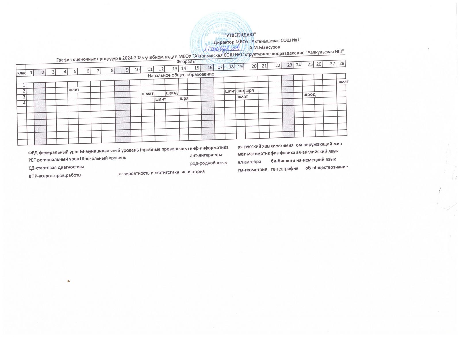- График оценочных процедур в 2024-2025 у.г. 3 четверть февраль