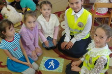 26 сентябрь көнне Фәрит Ахмадишин исемендәге балалар оешмасы ЮИД отряды “Куркынычсызлык атнасы” кысаларында “ Алтынчәч” балалар бакчасына нәни дусларыбызны юл йорү кагыйдәләрен утәргә өндәү максаты белән бардылар. Уен бик кызыклы узды. Командалар бик тиз арада юл йорү билгеләре төшкән пазлларны җыеп бетерделәр, матур итеп раскраскалар буядылар,гомүмән бик актив катнаштылар. Чарада ГИБДД инспекторы Саетова Р.З. катнашты, балаларга бүләкләр өләште.