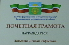 Латыпова Лейсан Рафисовна стала лауреатом районного конкурса "Мой родной край" в номинации "Самая инновационная работа". Поздравляем!!!