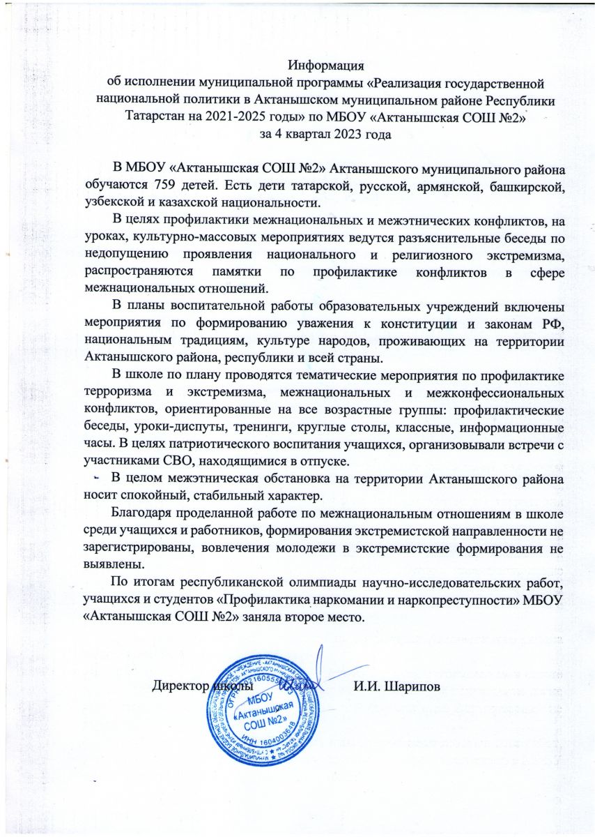 Муниципальное бюджетное общеобразовательное учреждение «Актанышская средняя общеобразовательная школа №2 с углубленным изучением отдельных предметов» Актанышского муниципального района Республики Татарстан / Татарстан Республикасы Актаныш муниципаль районы «Аерым фәннәрне тирәнтен үзләштерүле Актаныш икенче урта гомуми белем бирү мәктәбе» муниципаль бюджет гомуми белем бирү учреждениесе