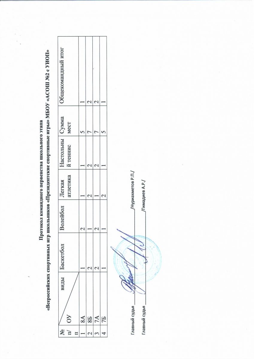 Протокол школьного этапа Всероссийских игр школьников "Президентские спортивные игры"