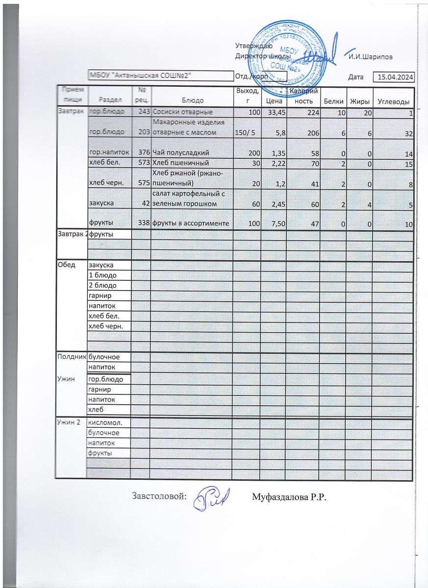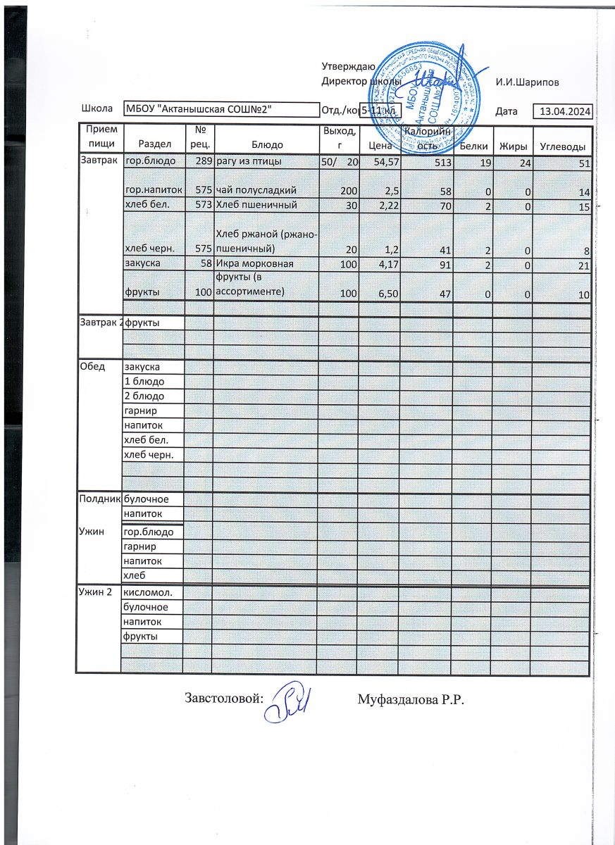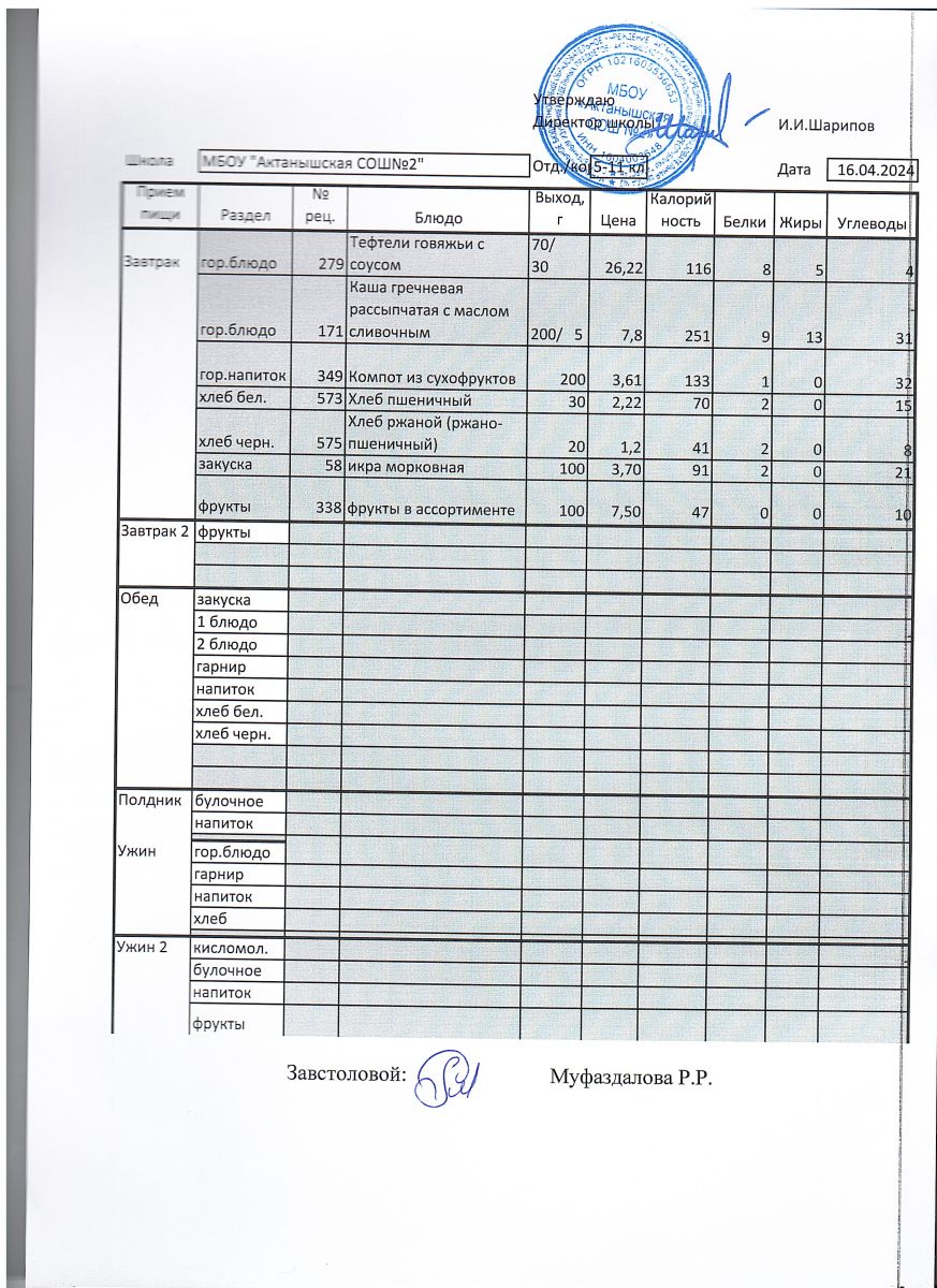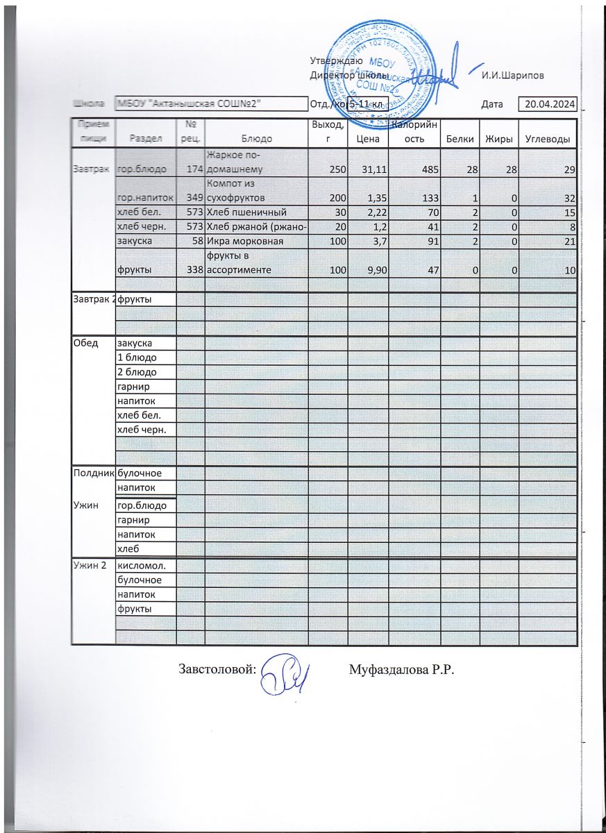 Меню пришкольного лагеря 1.06.2024-21.06.2024 г