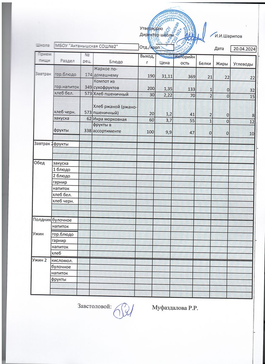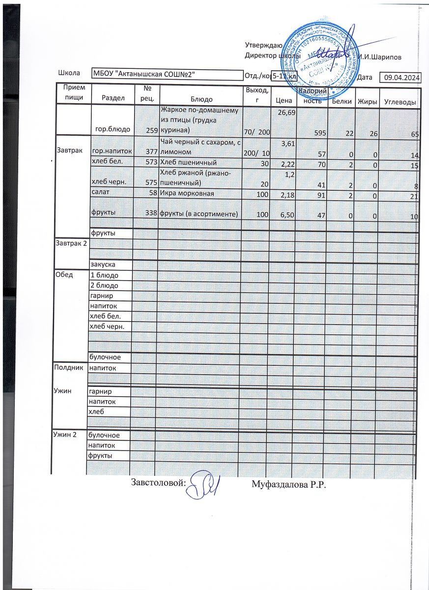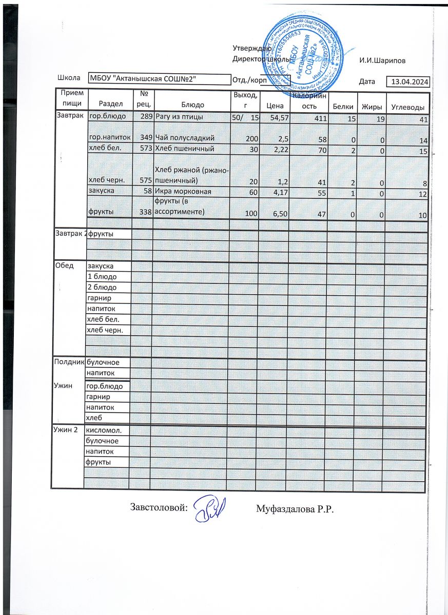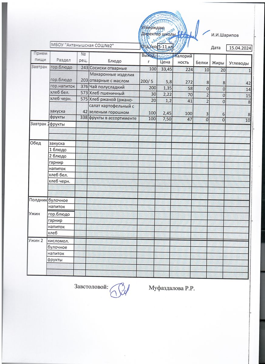 Меню пришкольного лагеря 1.06.2024-21.06.2024 г