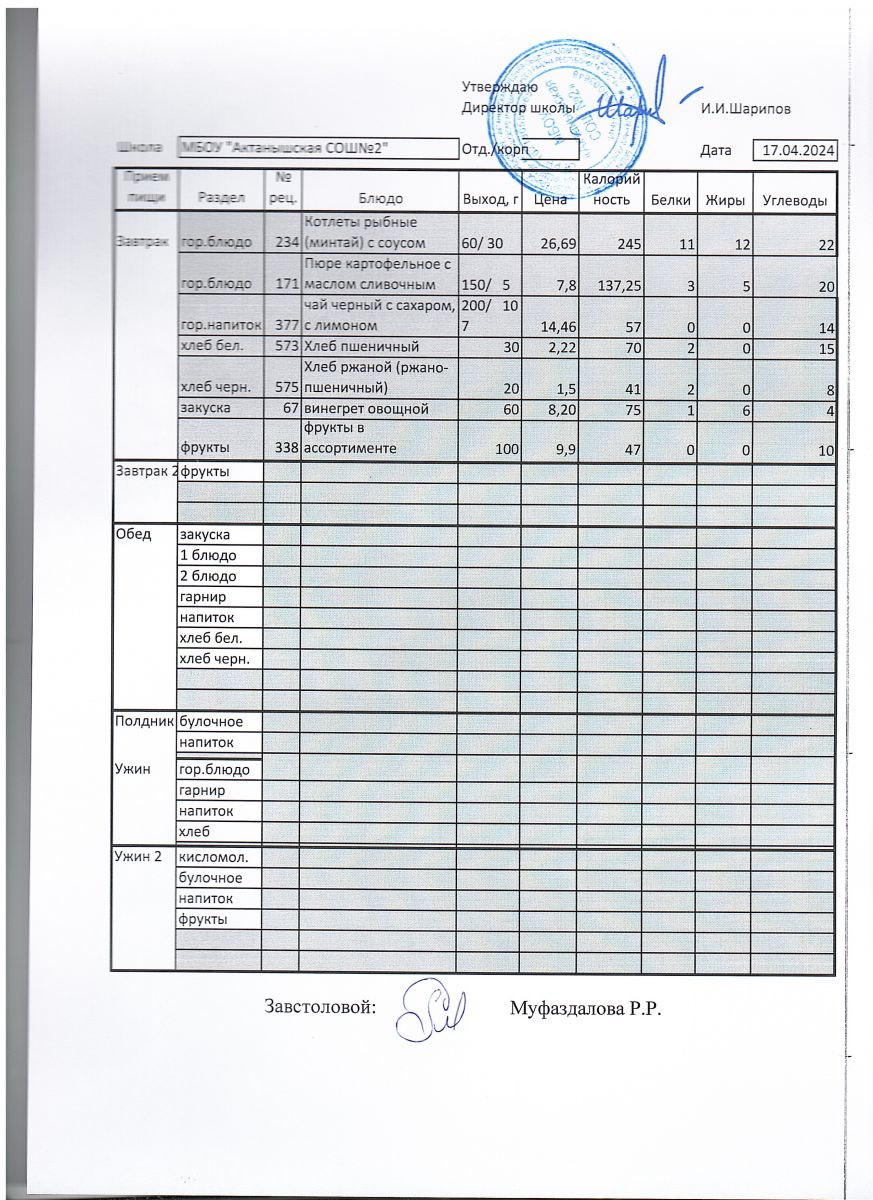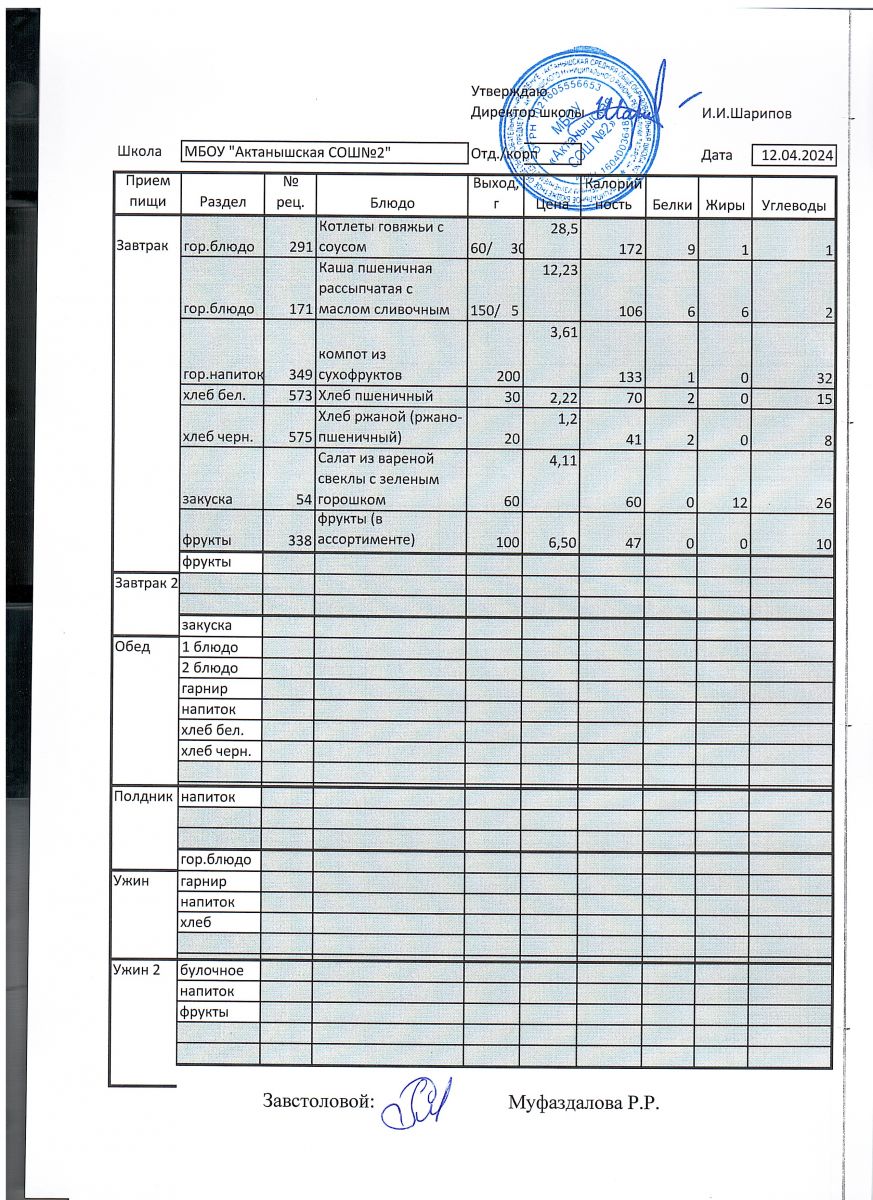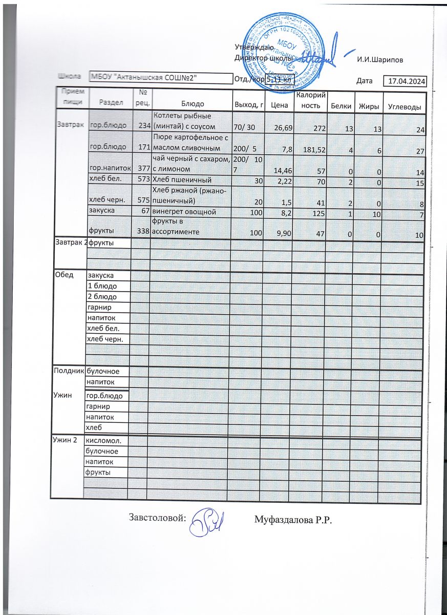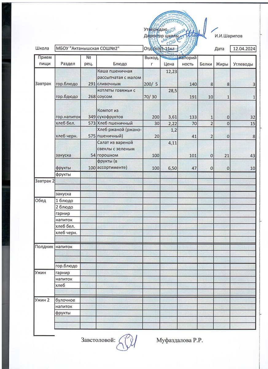 Ежедневные меню на 2024-2025 учебный год
