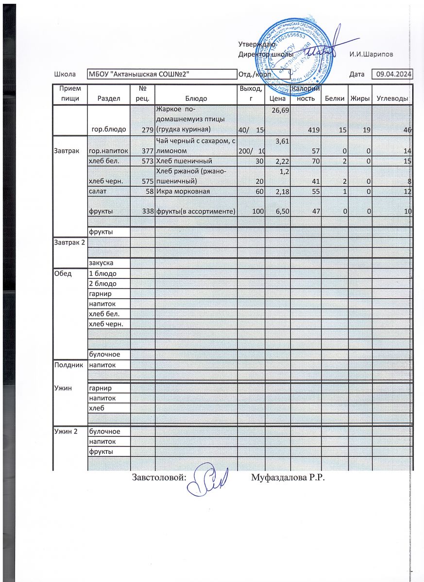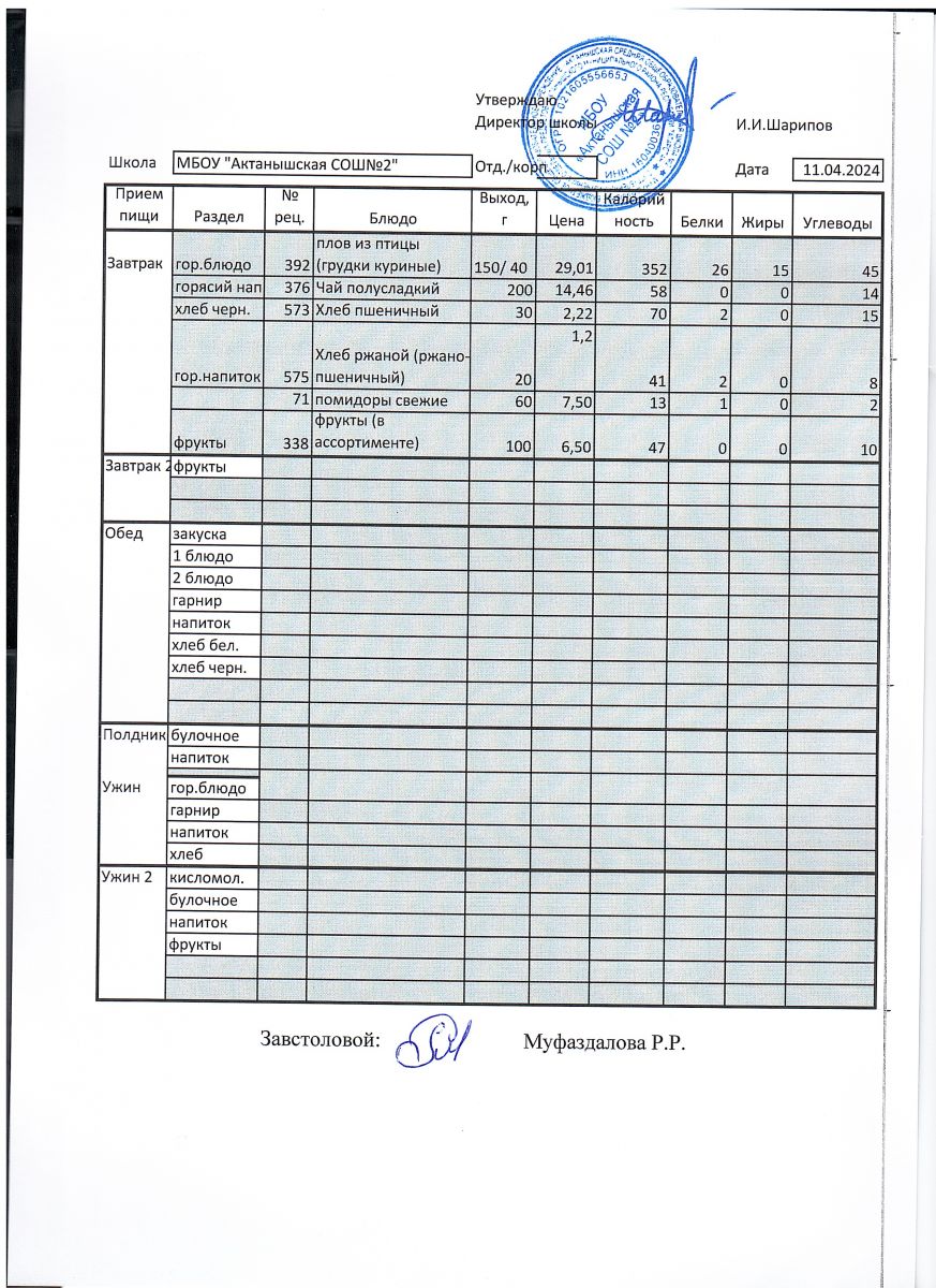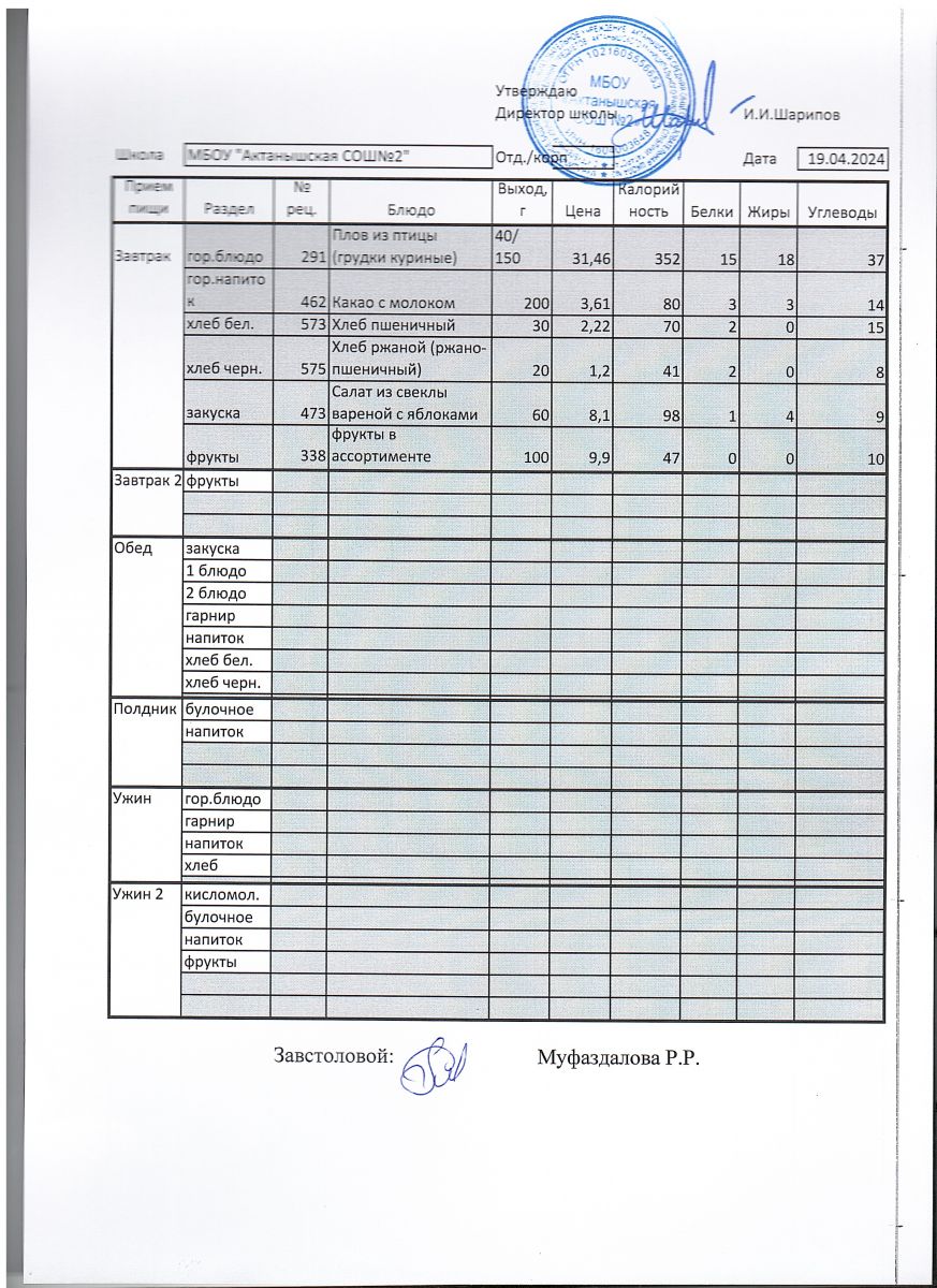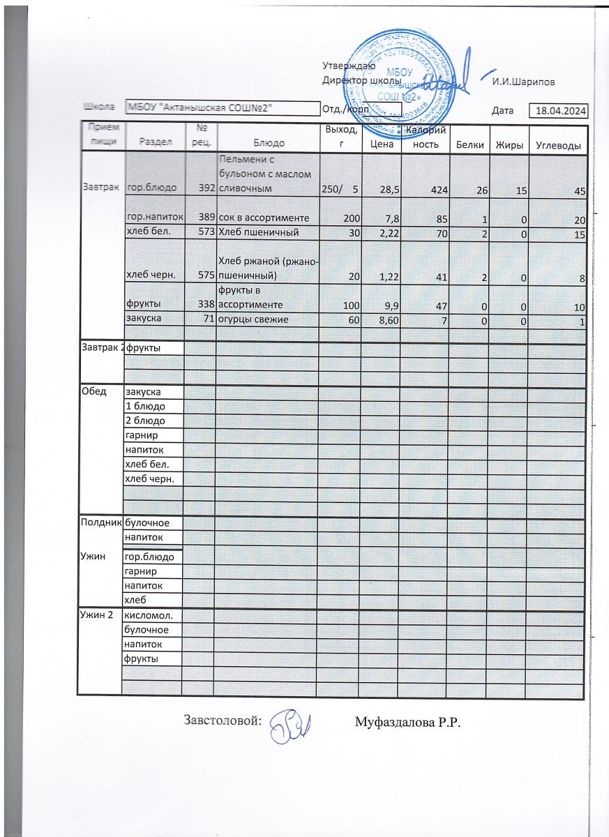Ежедневные меню на 2024-2025 учебный год