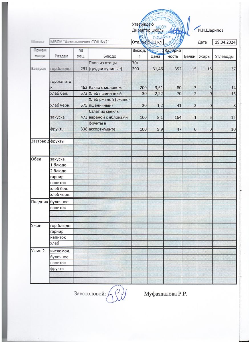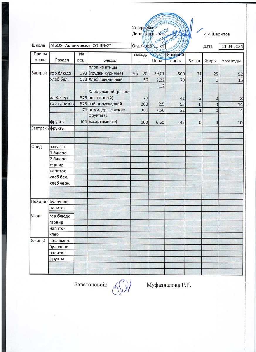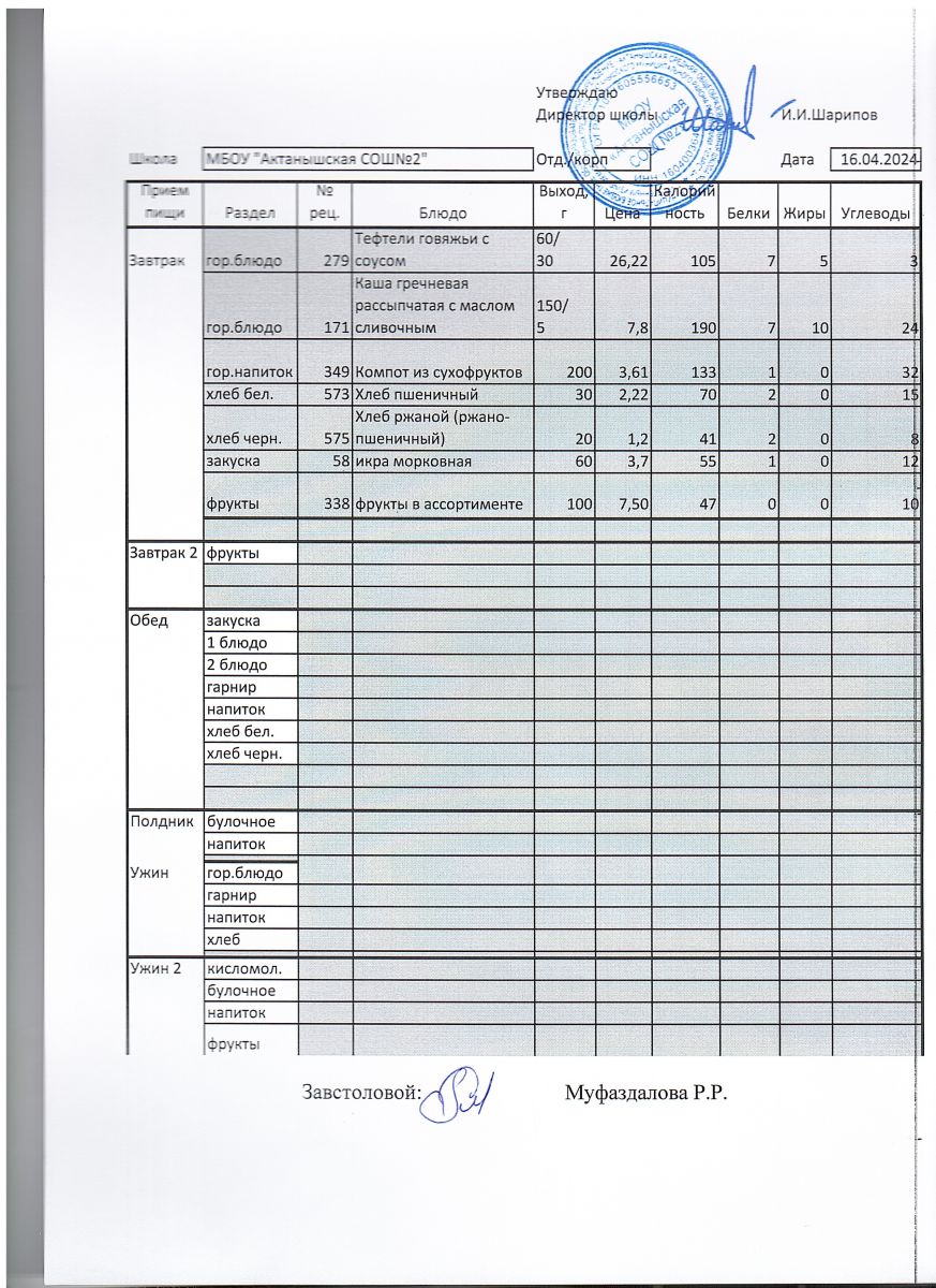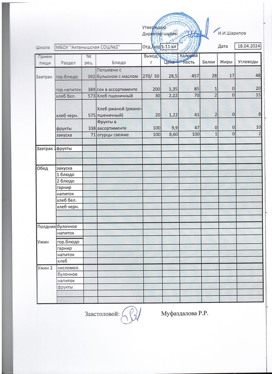 Ежедневные меню на 2024-2025 учебный год