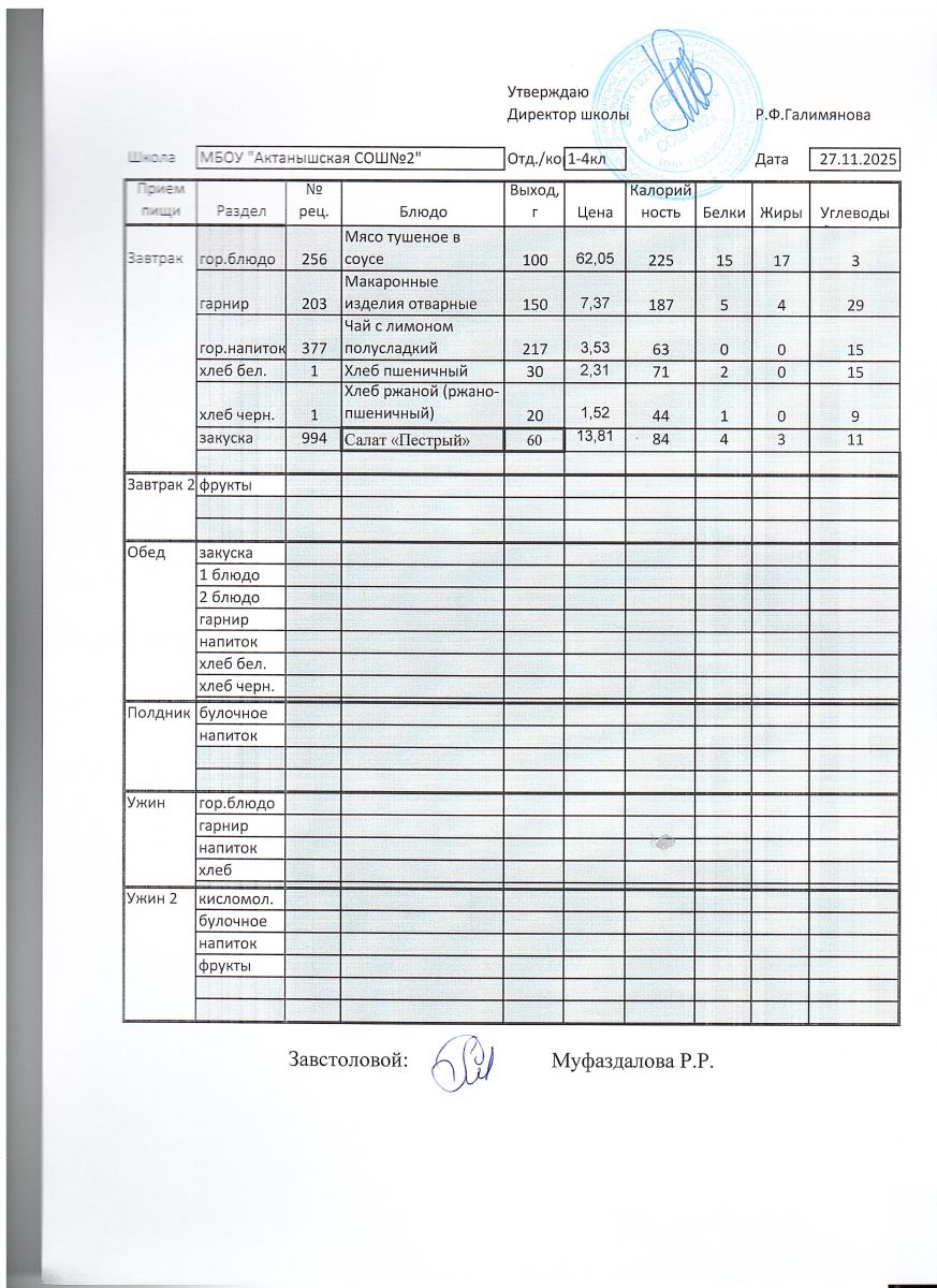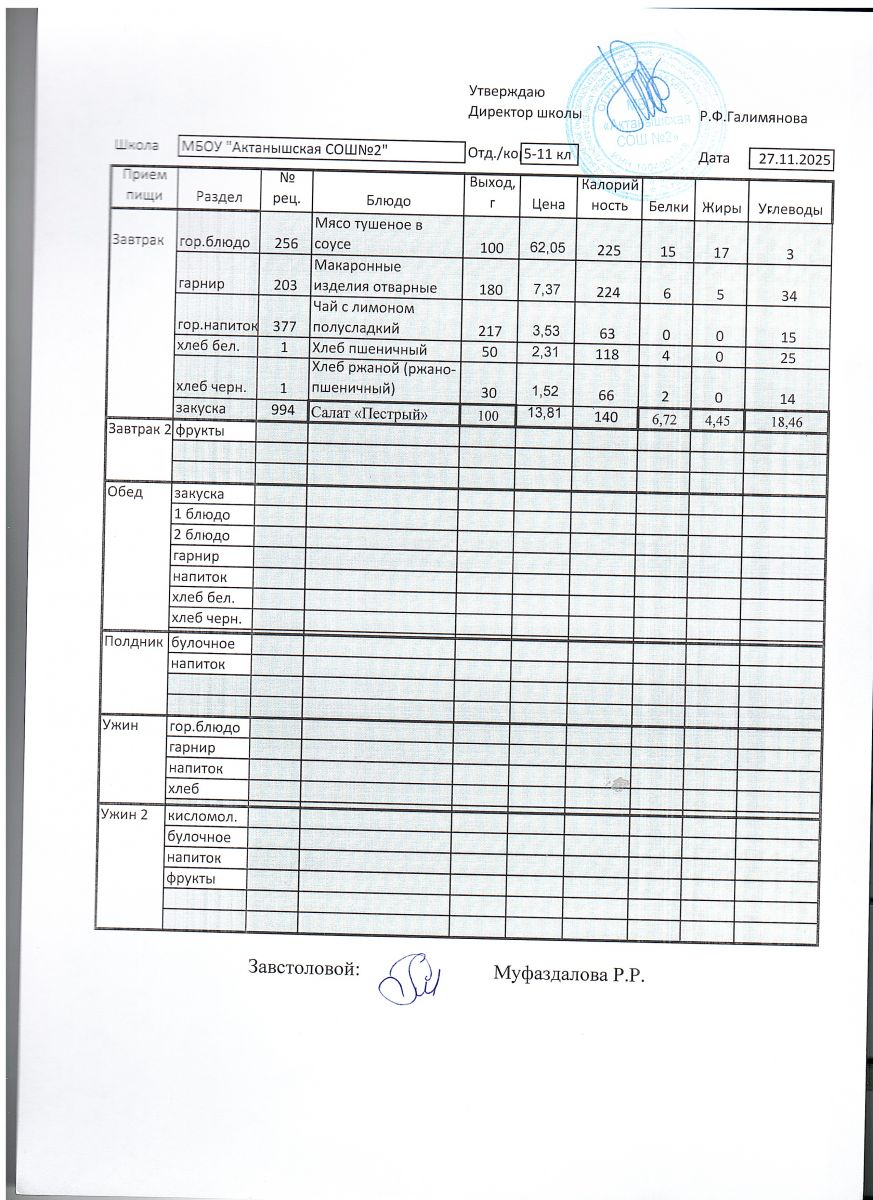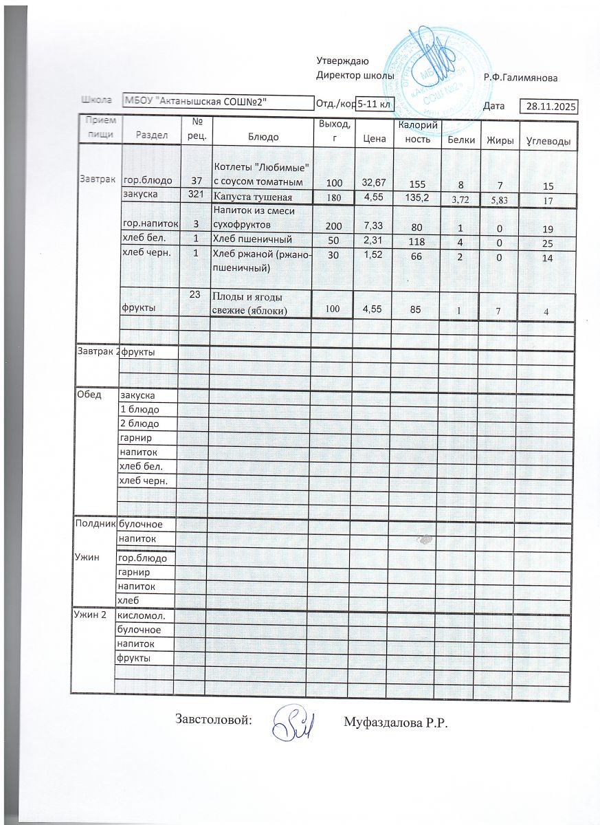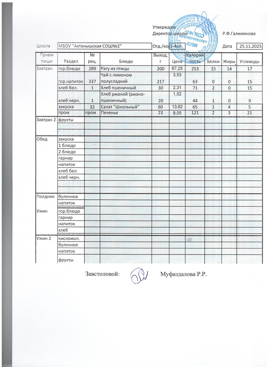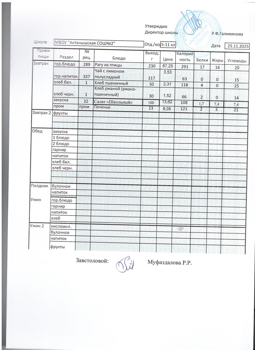 Ежедневные меню на 2025-2026 учебный год
