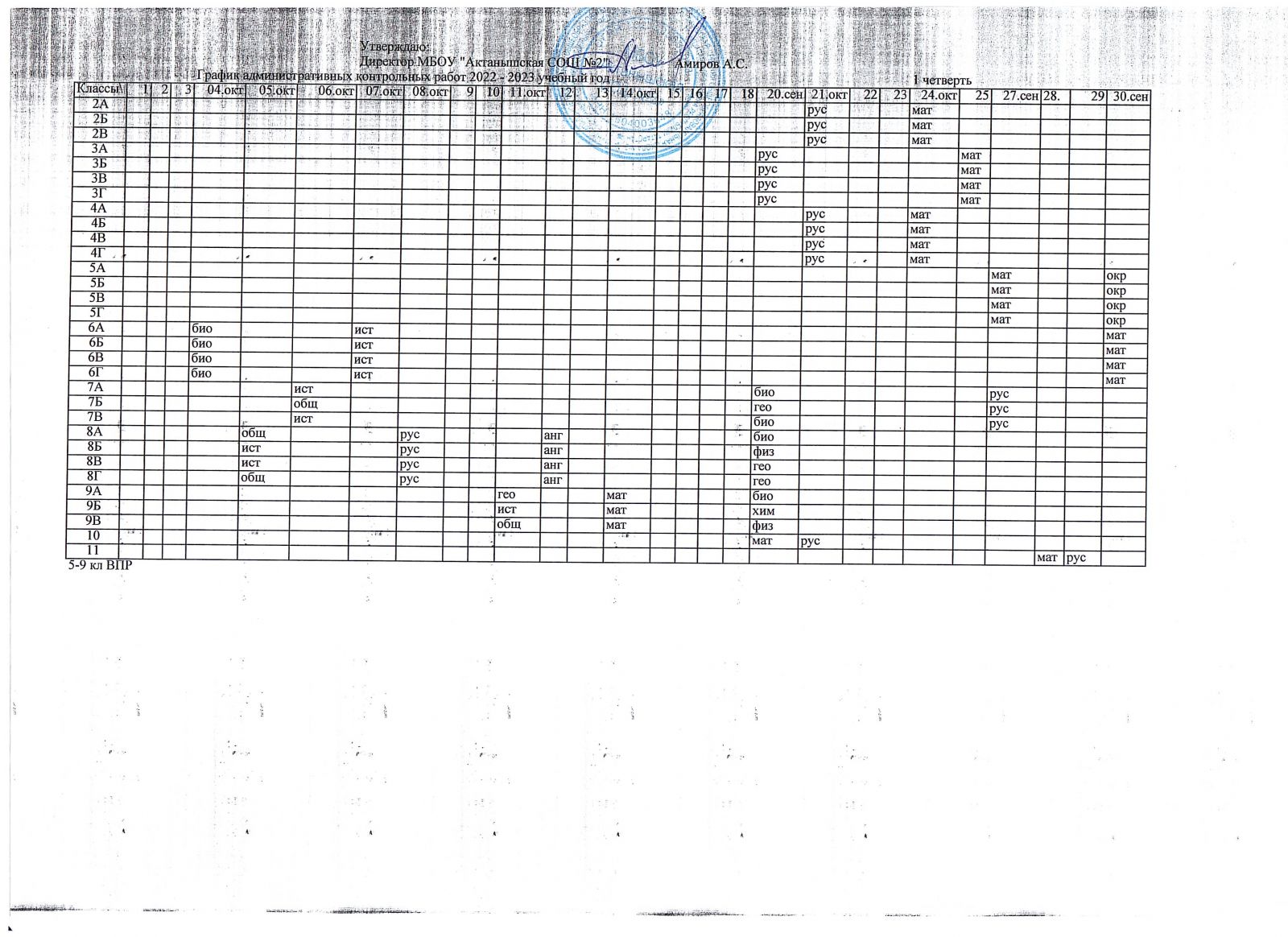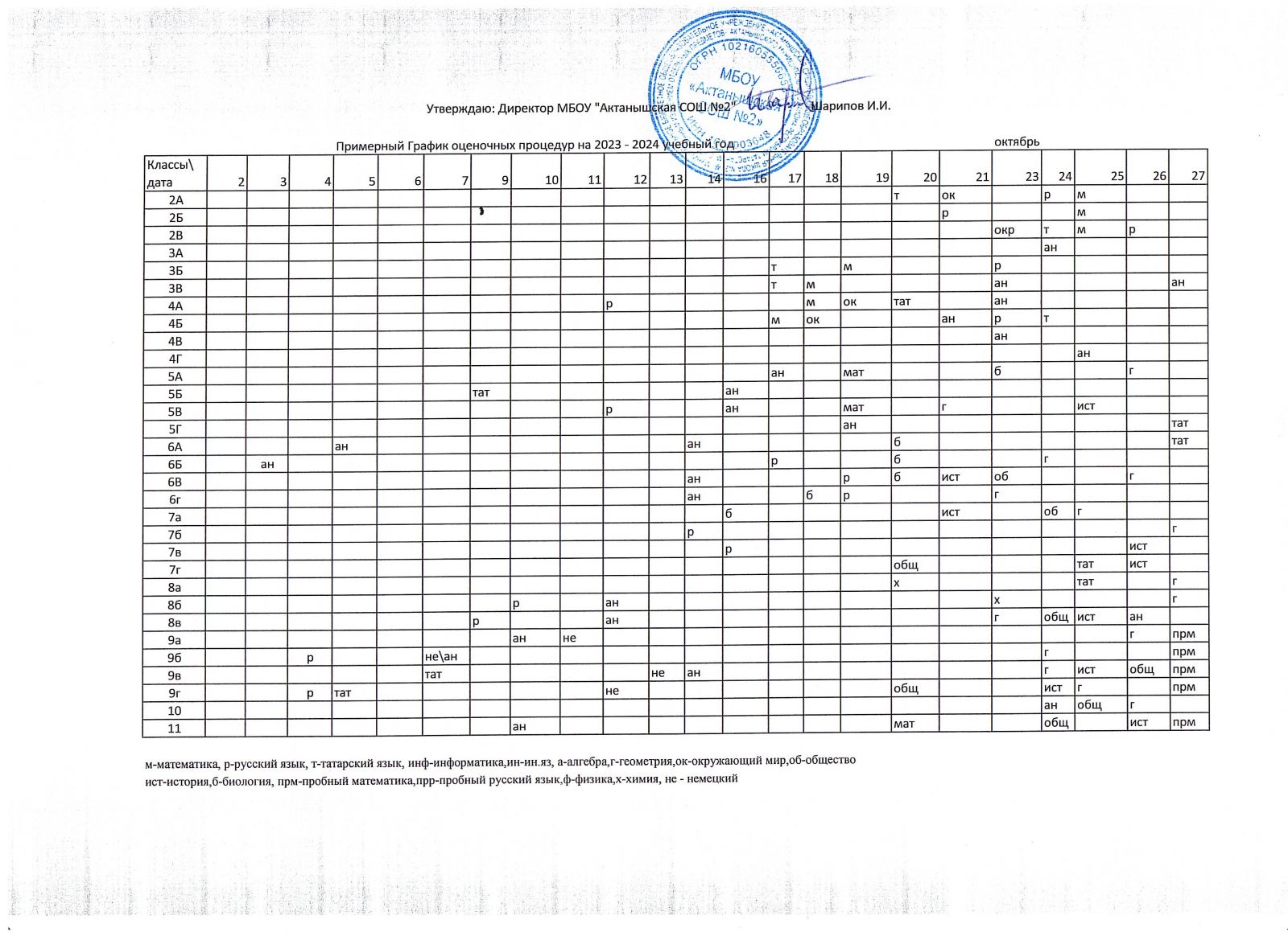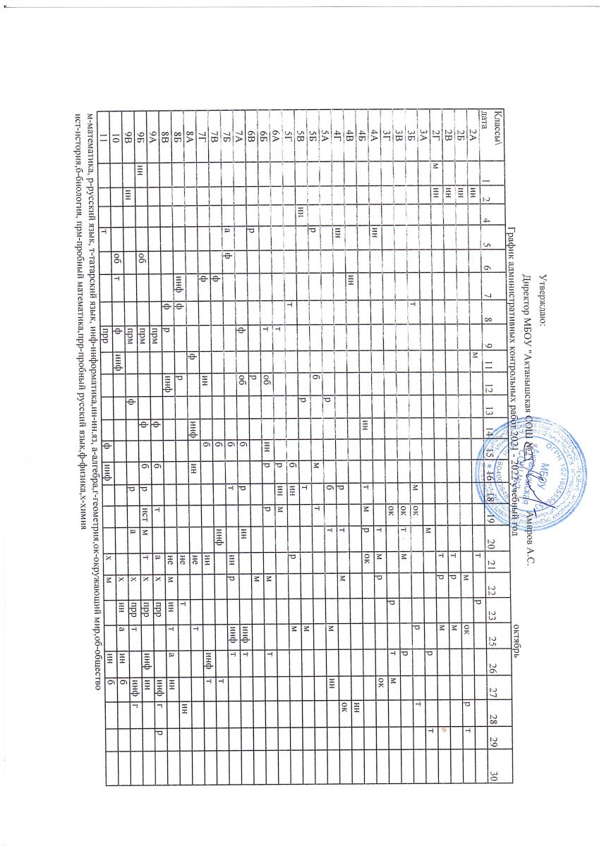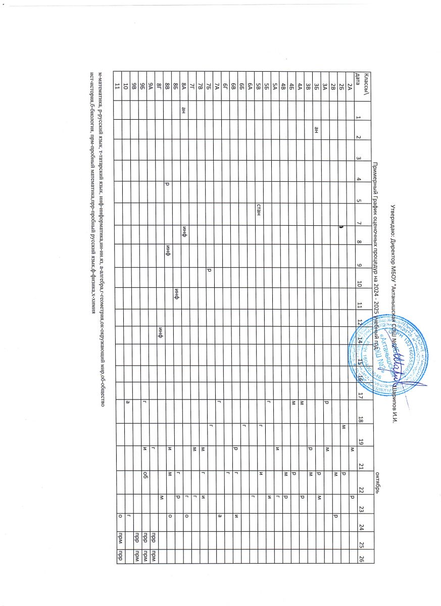 Примерный график оценочных процедур (октябрь)