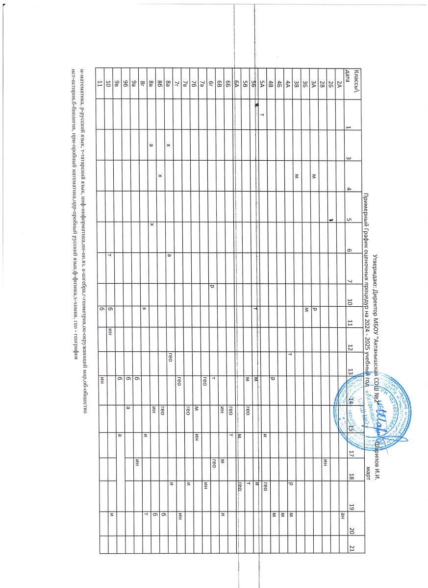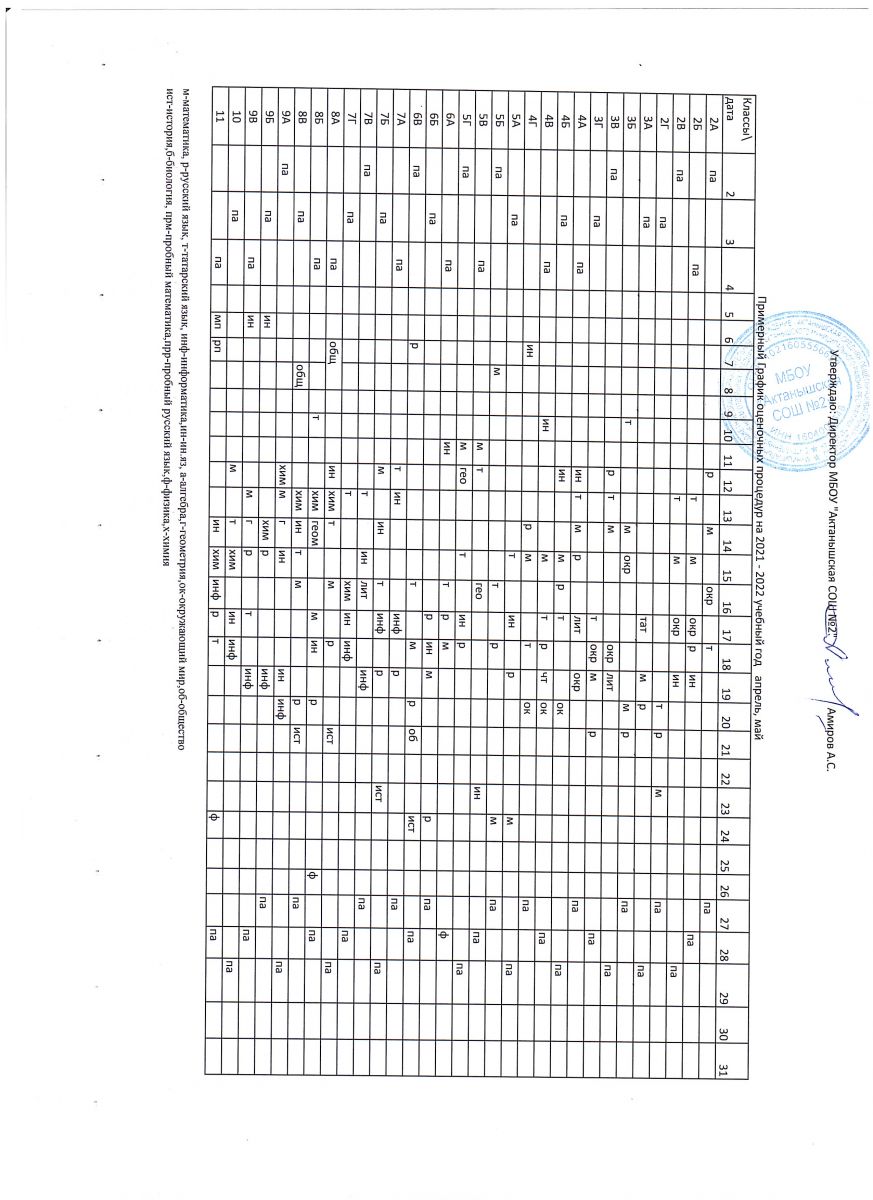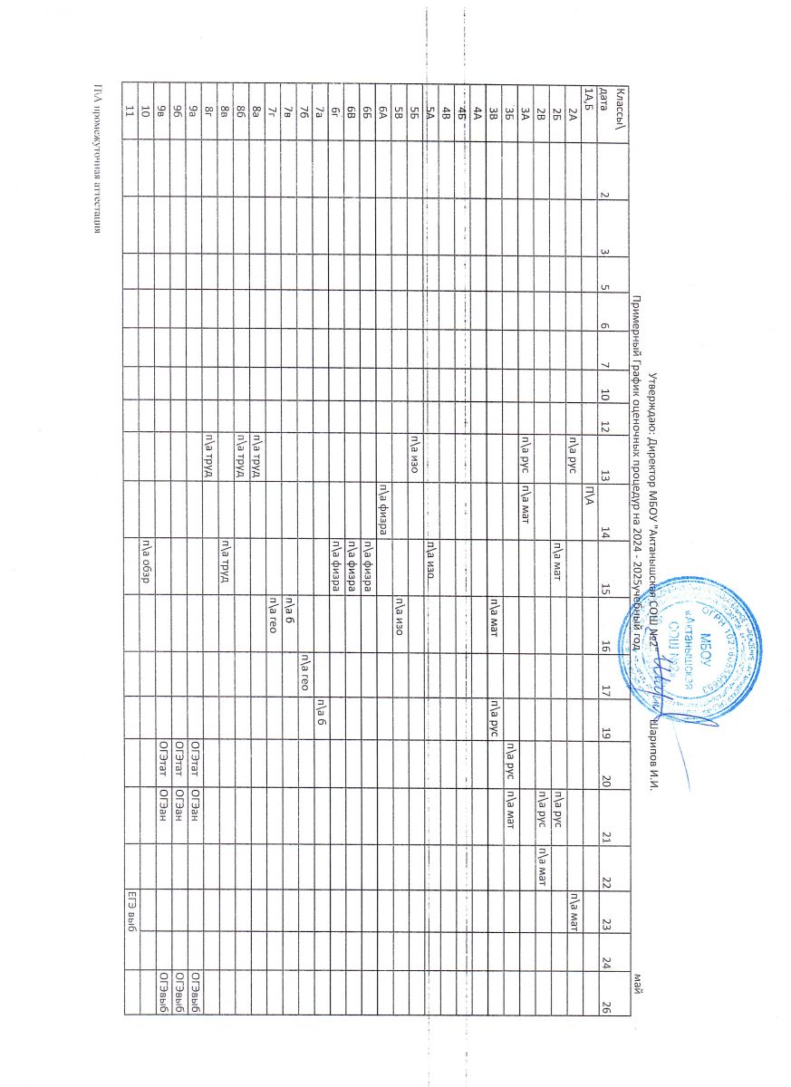 Примерный график оценочных процедур (май)