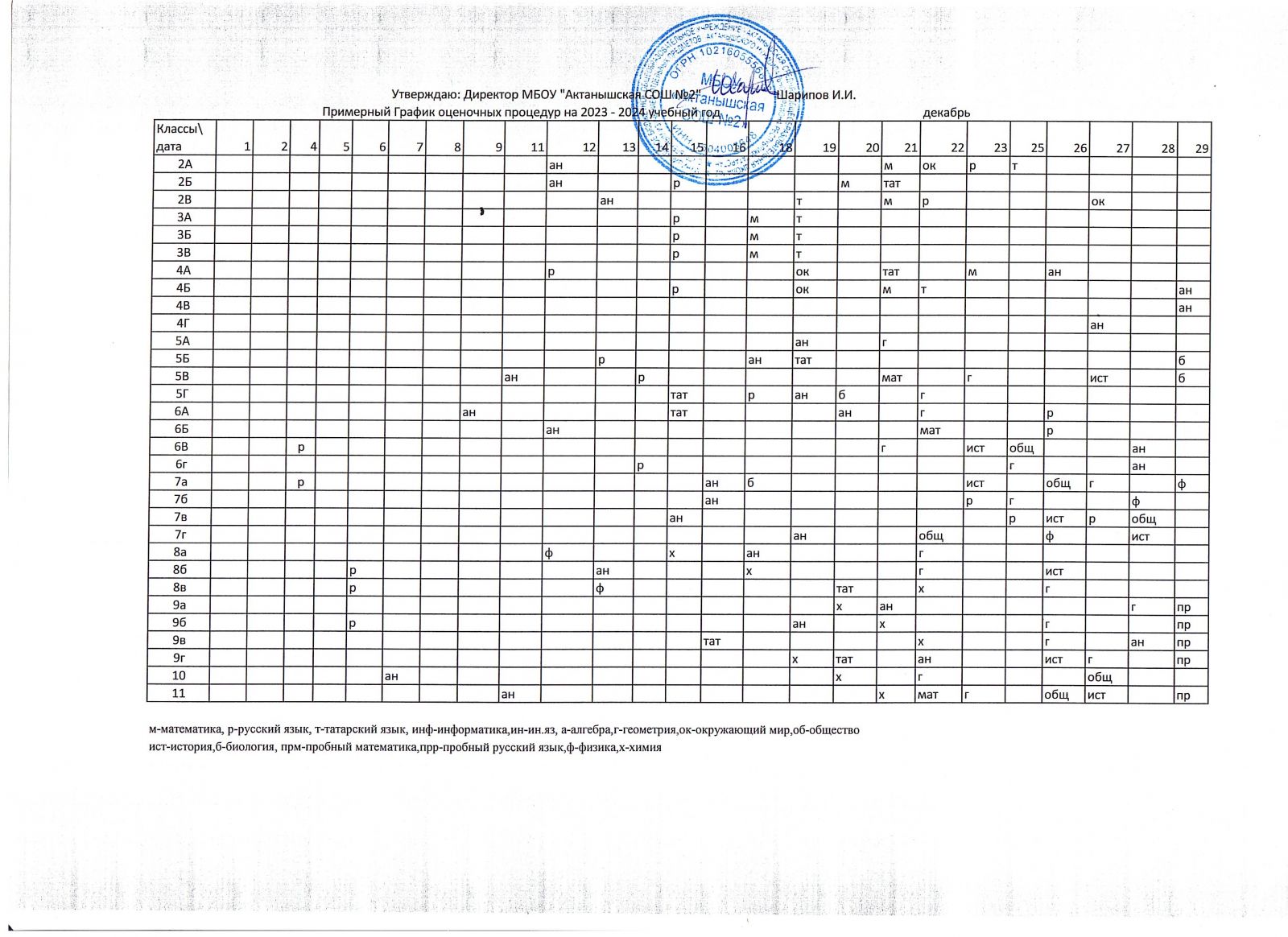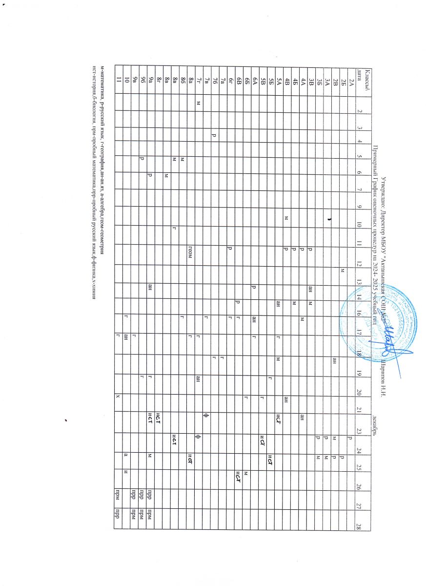 Примерный график оценочных процедур (декабрь)