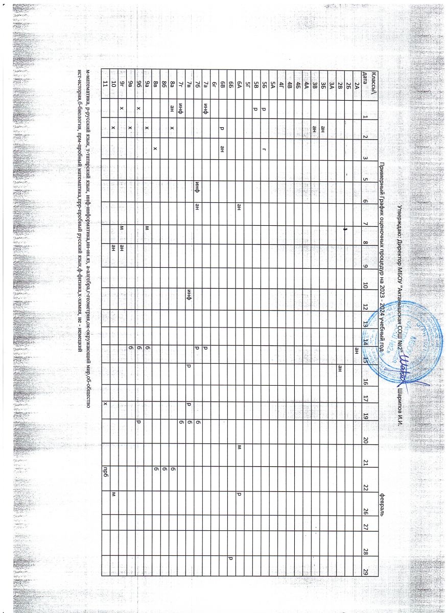 Примерный график оценочных процедур (февраль)