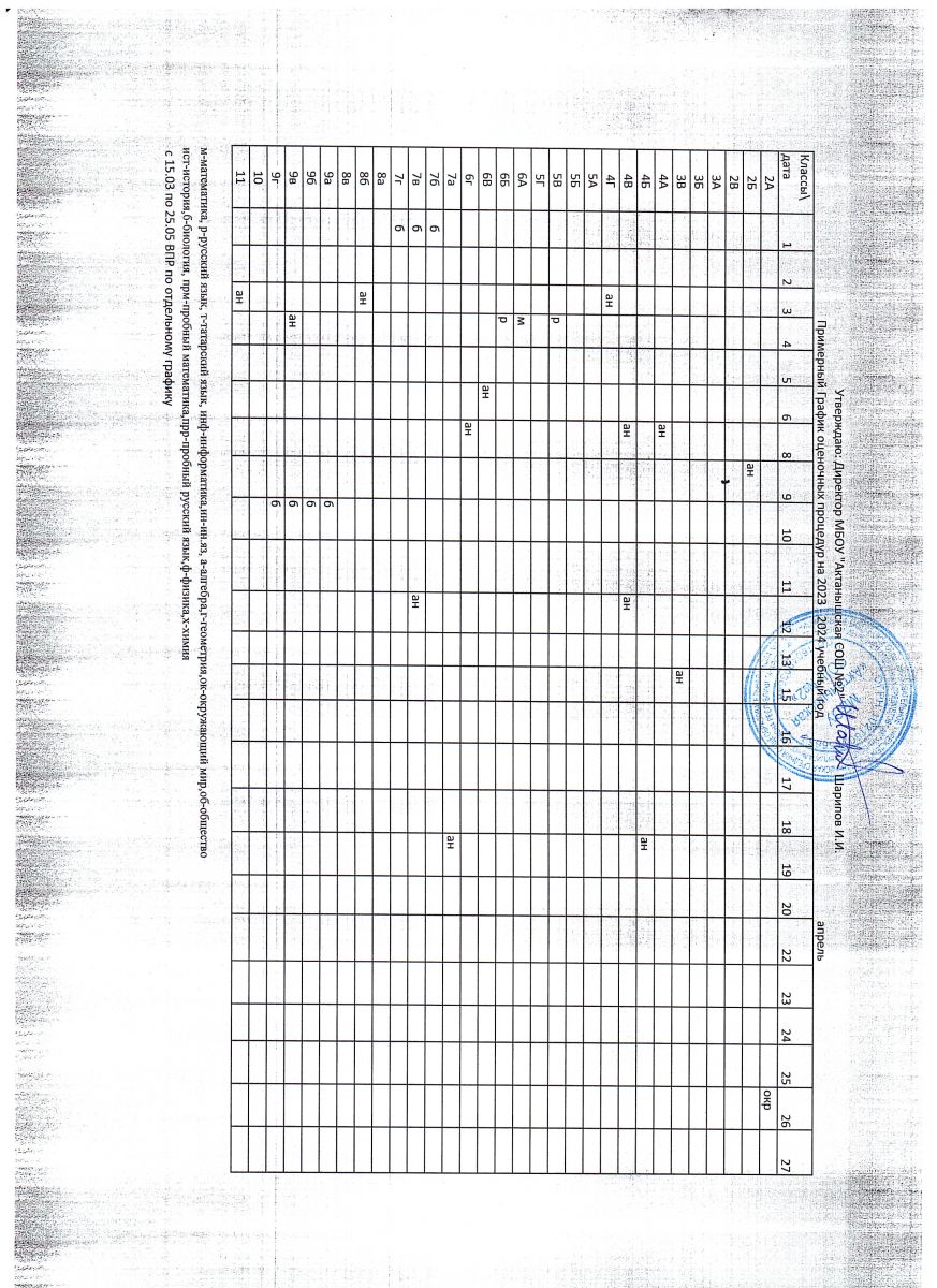 Примерный график оценочных процедур (апрель)