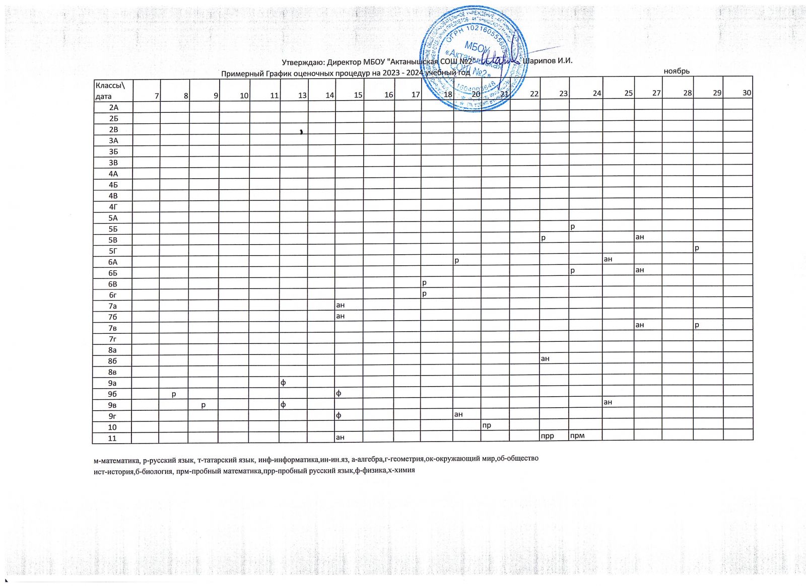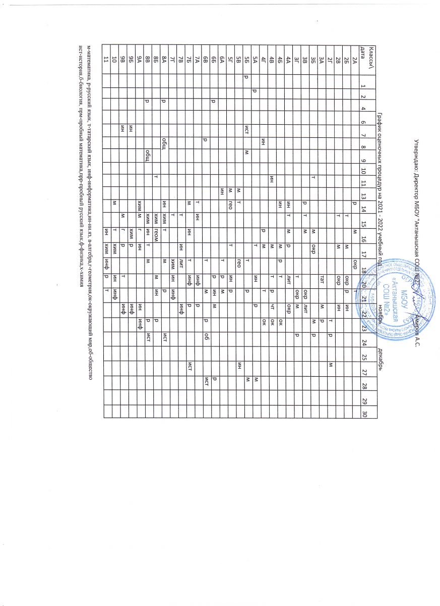 Примерный график оценочных процедур (ноябрь)