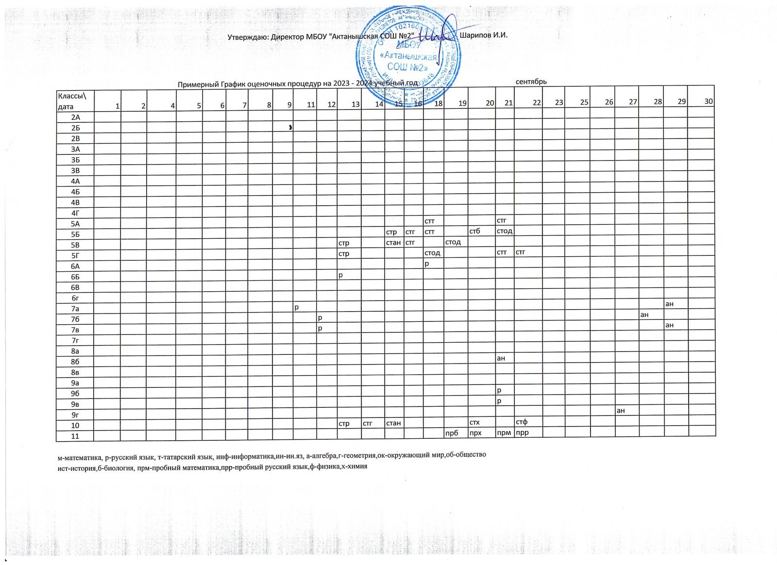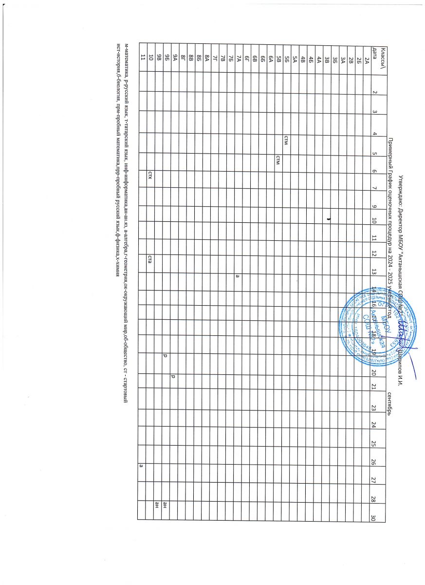 Примерный график оценочных процедур (сентябрь)