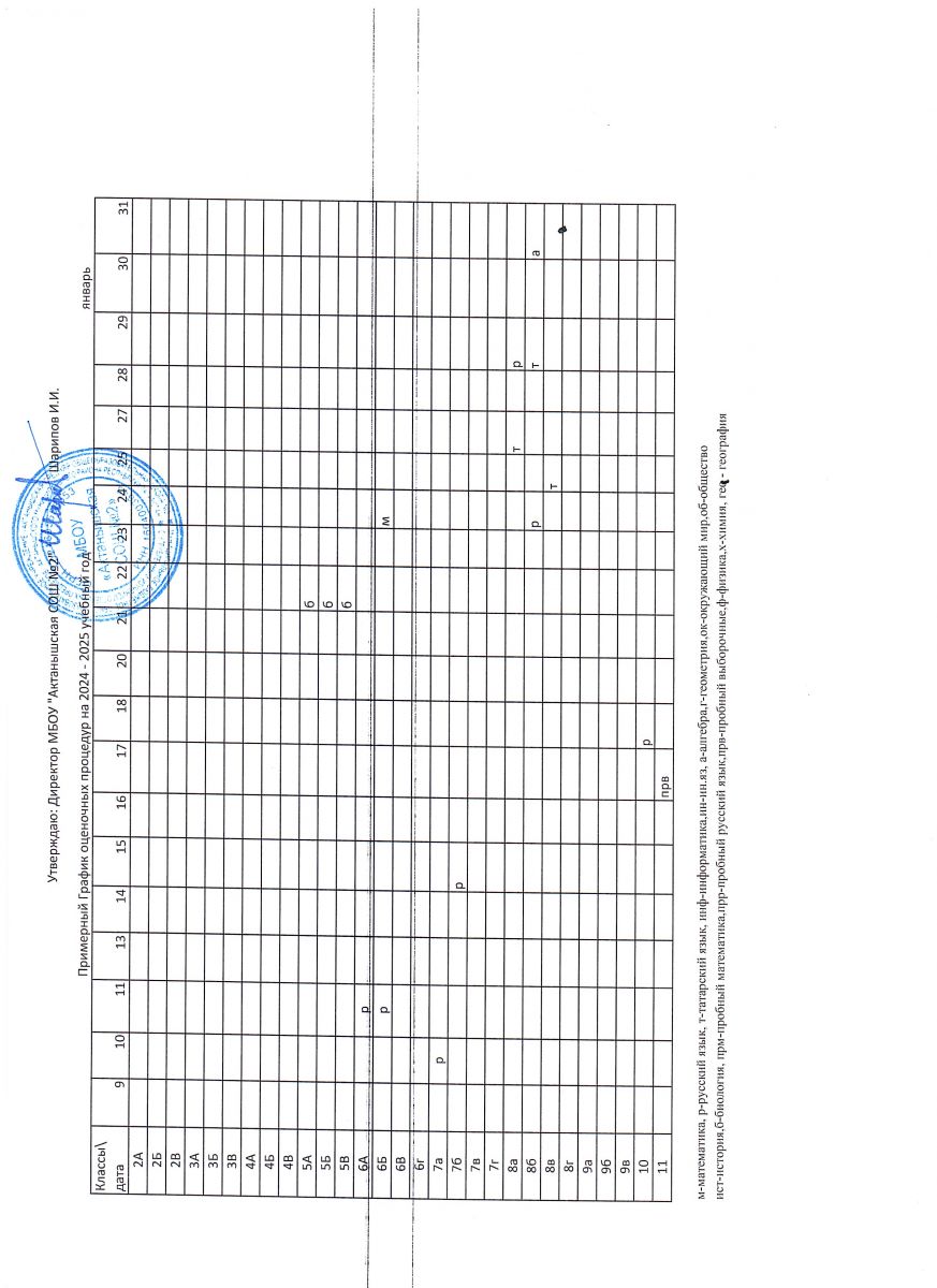 Примерный график оценочных процедур (январь)