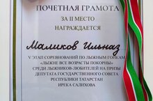 Учитель математики и информатики нашей школы Маликов И.Ф. занял ВТОРОЕ место в 5 этапе соревнований по лыжным гонкам "Лыжне все возрасты покорны" среди лыжников-любителей на призы депутата Государственного Совета РТ Ирека Фариовича Салихова. Поздравляем!