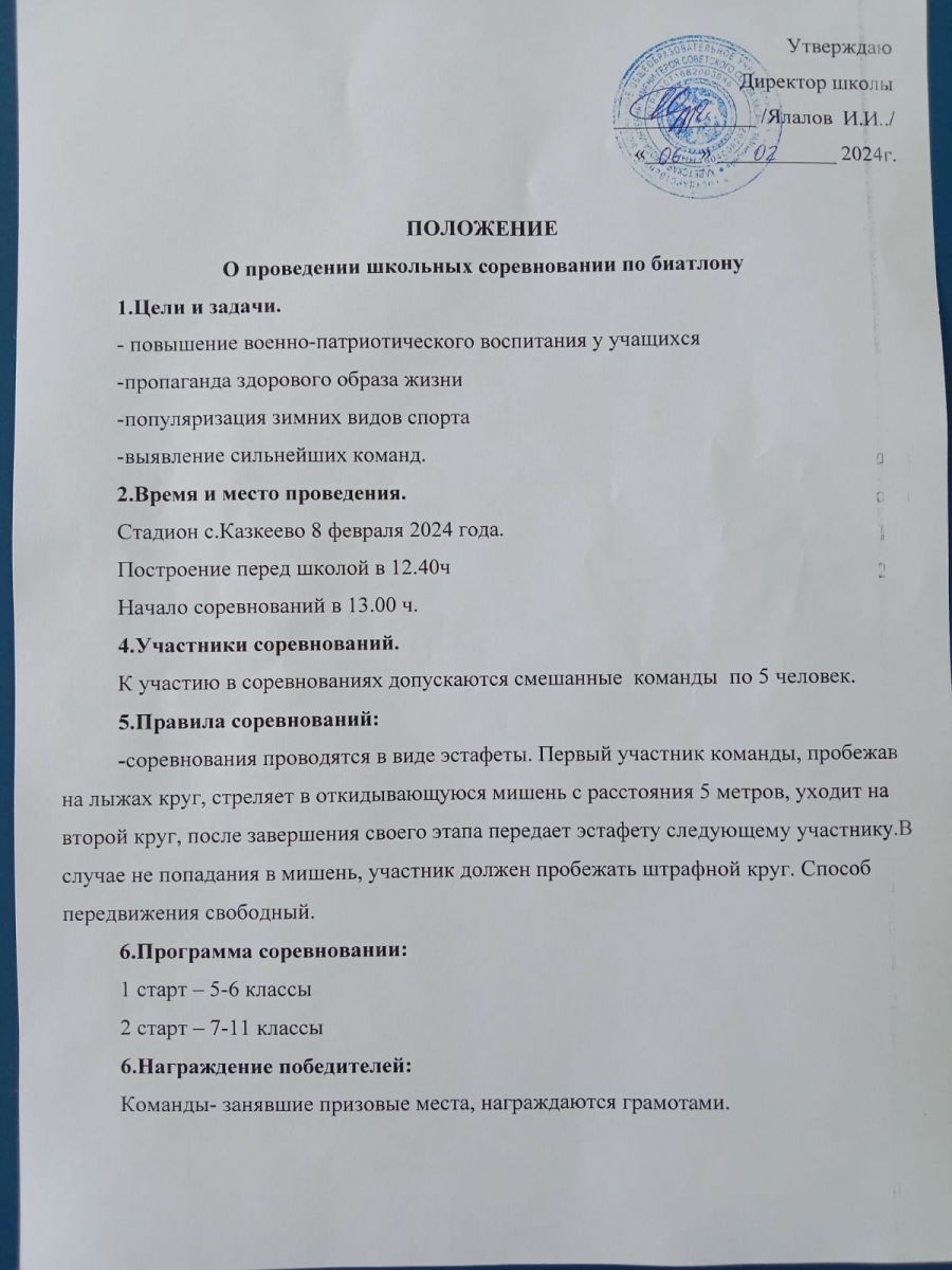 Школьные соревнования по биатлону 07.02.2024