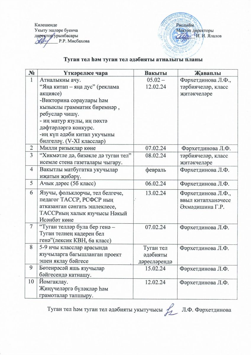 Месячник и неделя татарского языка и татарской литературы 05.02.2024