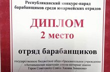 Отряд барабанщиков нашей школы под руководством руководителя Искужиной Р.Р. занял ВТОРОЕ место в республиканском конкурсе-парадов барабанщиков среди юнармейских отрядов.