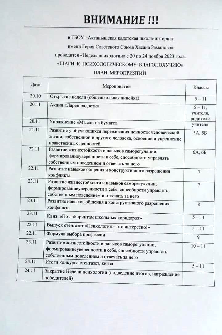 С 20 по 24 ноября в школе проходит неделя психологии "Шаги к психологическому благополучию".