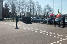 24 апреля в нашей школе учебная неделя началась с исполнения гимна и поднятия государственного флага.