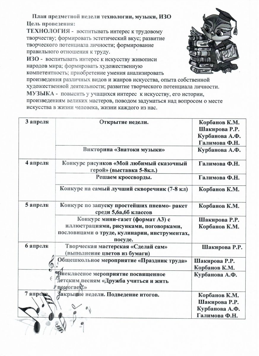 С 3 по 7 апреля в школе проходит неделя технологии и музыки.