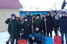 В рамках патриотического направления «Волонтёры победы» 7 марта кадеты 6а класса вместе с воспитателем Гареевым З.Р. побывали в гостях у мамы мобилизованного Гикрамина Айдара Халисэ апа. Кадеты расчистили участок дома от снега, паласы вытрясли.