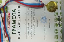 Учитель информатики и математики Маликов И.Ф. занял I место в районном предновогоднем турнире по настольному теннису, награждён Грамотой и медалью. Поздравляем!