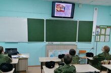 На классных часах мужества сегодня вспоминали героев земли Российской: А. Невского, Д. Донского, К. Минина и Д. Пожарского, А. В. Суворова, М. И. Кутузова, Г. К. Жукова и других славных сынов Отечества.