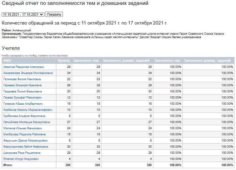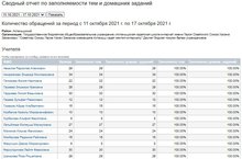 Сводный отчет по заполняемости тем и домашних заданий (11-16.10.2021)
