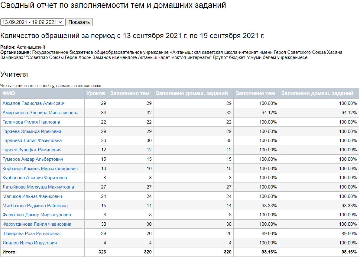 Сводный отчет по заполняемости тем и домашних заданий (13-17.09.2021)