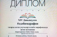 Учительница татарского языка и татрской литературы нашей школы Фархутдинова Лейла Фависовна награждена Дипломом за активное участие в XIV всемирном литературном онлайн-марафоне читателей на татарском языке.