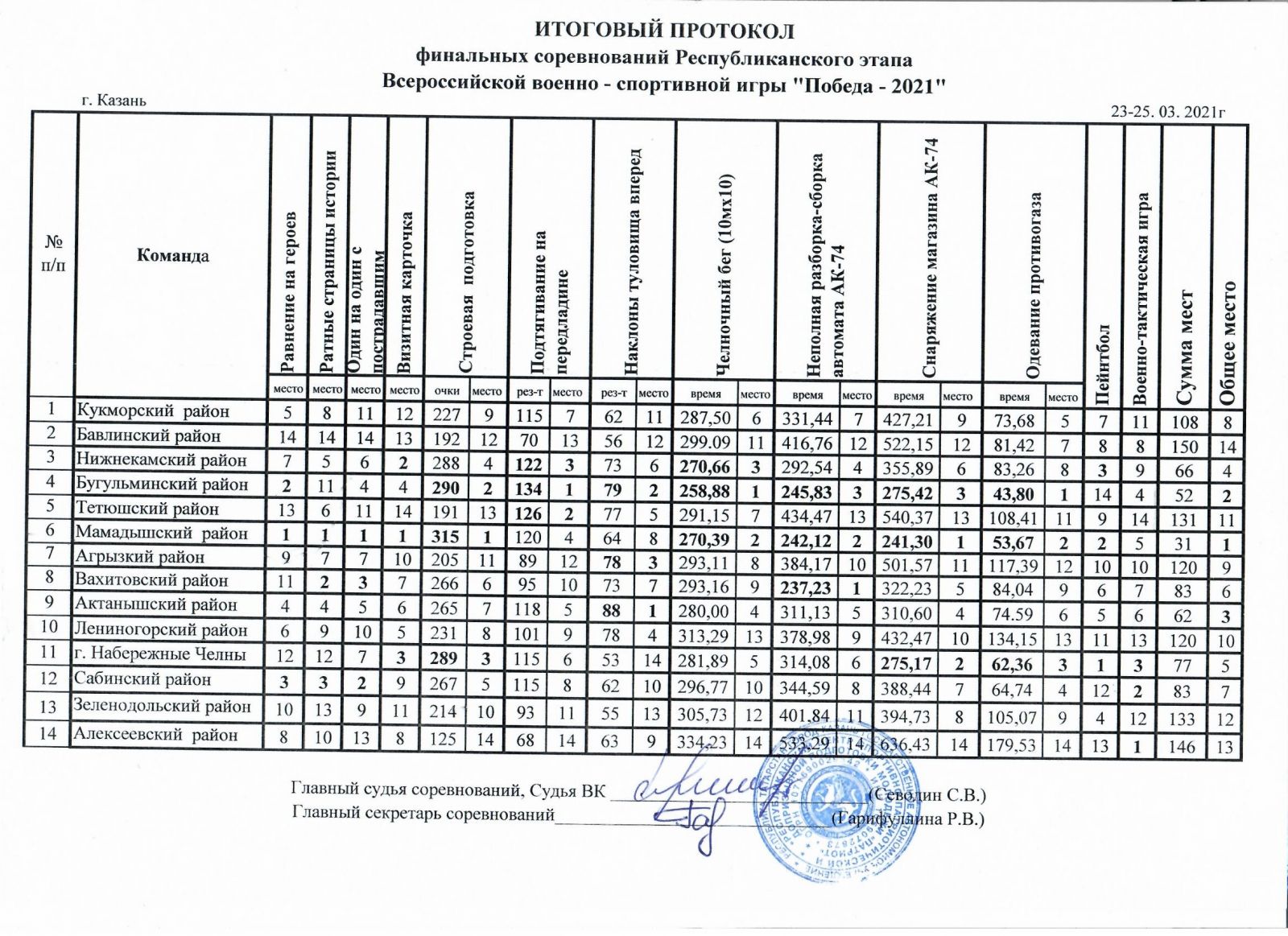 Итоги республиканского этапа Всероссийской военно-спортивной игры "Победа 2021" 25.03.2021