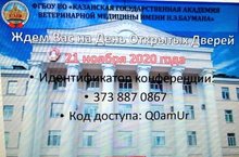 21 ноября в ФГБОУ ВО "Казанская государственная академия ветеринарной медицины имени Н.Э.Баумана" состоится День Отукрытых Дверей".