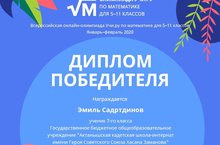 Ученик 7б класса нашей школы Садртдинов Эмиль награждён Дипломом победителя Всероссийской онлайн-олимпиады Учи.ру по математике для 5–11 классов. Учитель математики и информатики Маликов И.Ф., наша школа - Благодарственными письмами. Поздравляем!