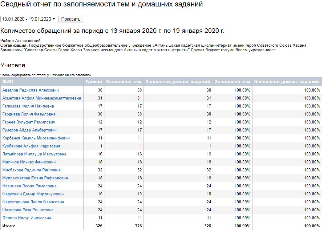 Сводный отчет по заполняемости тем и домашних заданий (13-18.01.2020) 20.01.2020