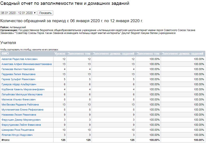 Сводный отчет по заполняемости тем и домашних заданий (06-12.01.2020) 13.01.2020