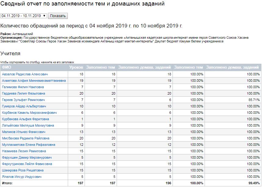 Сводный отчет по заполняемости тем и домашних заданий (06-09.11.2019) 11.11.2019