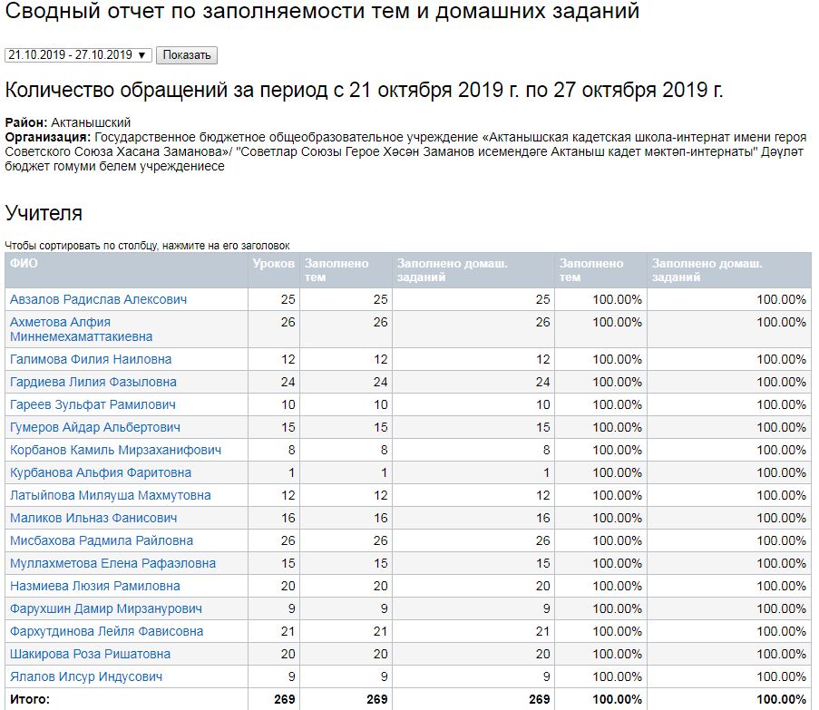 Сводный отчет по заполняемости тем и домашних заданий (21-26.10.2019) 29.10.2019