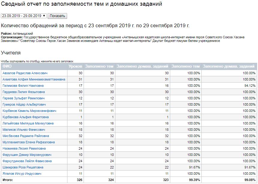Сводный отчет по заполняемости тем и домашних заданий (23-29.09.2019) 30.09.2019