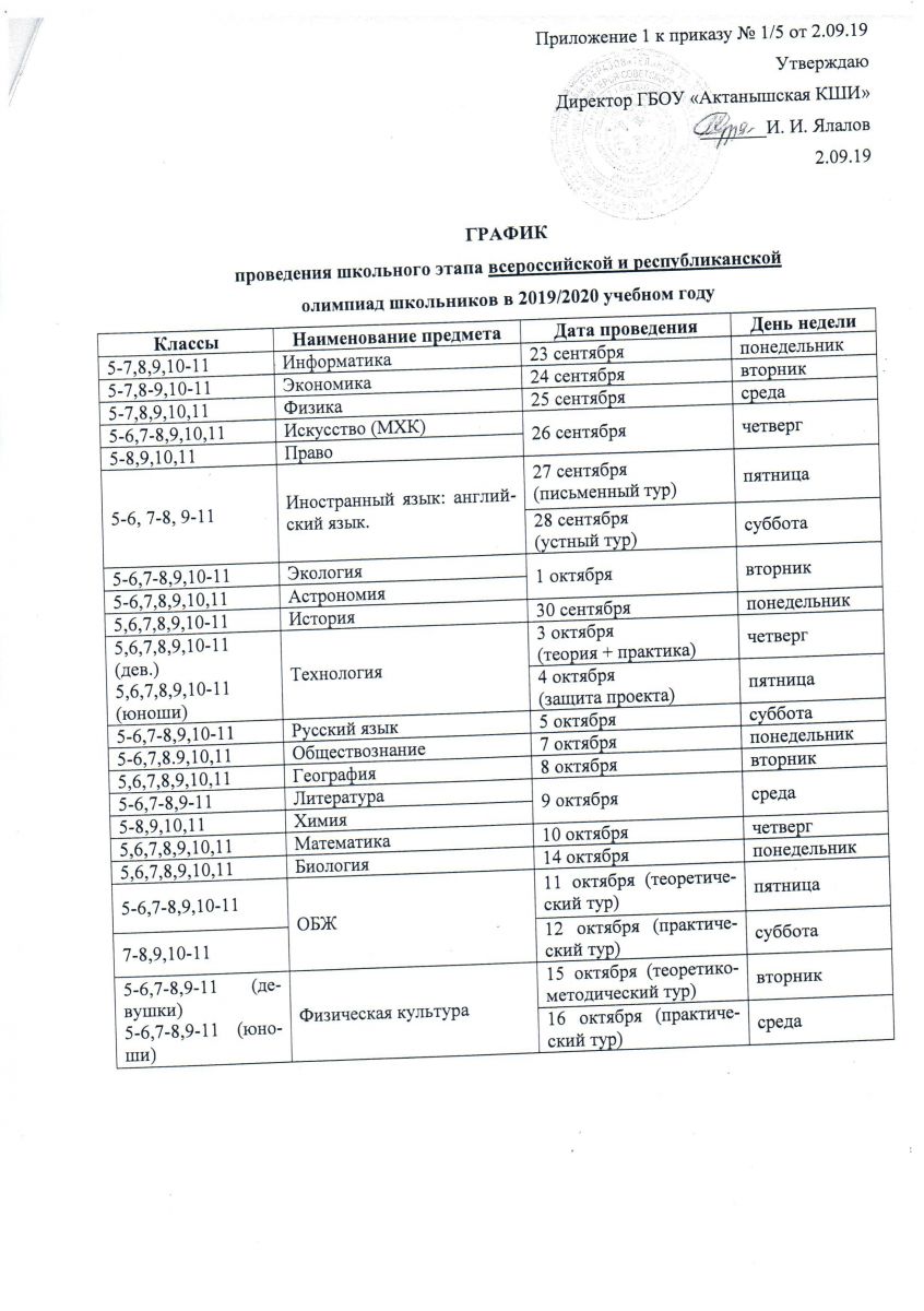 Школьный этап всероссийской и республиканской предметных олимпиад 18.09.2019