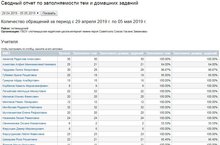 Сводный отчет по заполняемости тем и домашних заданий (29.04-05.05.2019 06.05.2019